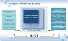 Además, son establecidas en el Consejo de Salud Suramericano concertación política alrededor de posiciones comunes en foros mundiales como, por ejemplo, la reforma de OMS.[7]