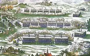 La insurrección de Kościuszko[nota 5] fue una rebelión contra el Imperio ruso y el Reino de Prusia liderada por Tadeusz Kościuszko por parte de la República de las Dos Naciones.[1] Fue un intento fallido de liberar a la Mancomunidad polaco-lituana de la influencia rusa después de la segunda partición de Polonia (1793) y la creación de la Confederación de Targowica.