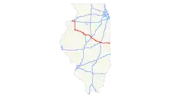 I 74 en Quincy en Danville.[2] La autopista tiene una longitud de 354,6 km (220.34 mi).[3]
