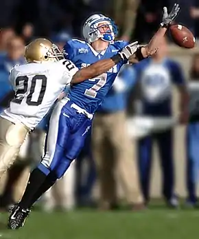 En los niveles tanto universitario como profesional, el jugador del equipo defensivo puede hacer contacto con el receptor dentro de las primeras cinco yardas a partir de la línea de scrimmage. Cualquier otro contacto más allá de esas cinco yardas en penalizado como un contacto ilegal. La interferencia de pase es marcada si el jugador defensivo hace contacto con el jugador ofensivo mientras intenta atrapar un pase. Cualquier contacto de manera inadvertida o sin intención, no puede ser penalizado.