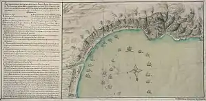 ![]() Mapa manuscrito español de la ciudad, describiendo las acciones militares (Biblioteca Nacional de España). | ||||