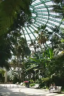 Los grandes pabellones acristalados forman una red de calles cubiertas donde se exhiben las colecciones de plantas; especialmente exóticas, una importante colección de camelias y algunos especímenes que aún sobreviven procedentes de la colección original de Leopoldo II.[1]
