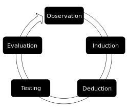 - Deducción: la formulación de experimentos que pondrán a prueba las hipótesis (es decir, confírmelas si son verdaderas, refutarlas si son falsas).