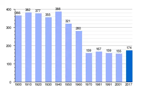 Población de derecho (1900-1991) o población residente (2001) según los censos de población del INE.[3] Población según el padrón municipal de 2017 del INE. |