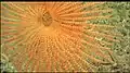 Los pólipos son cortos, de unos 3 mm y 1.5 mm de diámetro, y cuentan con 8 tentáculos. Normalmente de color naranja, amarillo o blanco, crecen alineados en las ramas, también en un solo plano y espaciados regularmente.