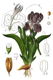 - Iris falcata Tausch, Hort. Canal. 1: t. 2 (1823).