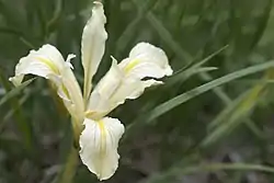 Iris macrosiphon , comúnmente denominada iris tazón de tubo, iris de tierra y iris largo entubado ,[1] es una especie de planta Angiosperma de la familia del lirio, endémica de California (Estados Unidos) en las estribaciones de la cordillera de las Cascadas, en las estribaciones norte y central de la Sierra Nevada, en la cordillera interior de la costa norte y en la zona de la bahía de San Francisco, donde se encuentra en pastizales soleados, praderas y bosques abiertos.[2][3] Las hojas son muy delgadas, 2,5-5 mm de ancho, y de color verde azulado. La flor es variable, de amarillo dorado a crema o de lavanda pálida a azul-púrpura profundo, generalmente con venas más oscuras. Los tallos de las flores suelen ser cortos (menos de 25 cm) cuando están al sol y llevan 2 flores. Florece en primavera.[4]