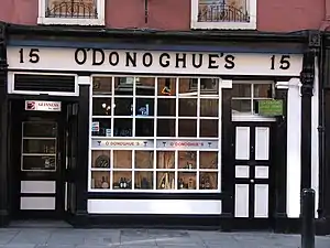 Un Irish pub es un local público (public house) en el que se sirven bebidas y comidas. El uso del término «bar» para un local de estas características es más común en Irlanda que en el Reino Unido. En 1635 había 1180 pubs licenciados en Dublín.[1] A comienzos del siglo XX los pubs irlandeses eran locales de venta de alcohol (spirit grocery).[cita requerida]