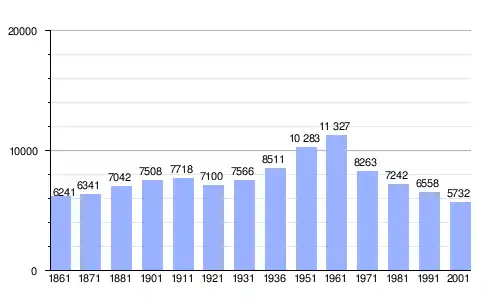 Gráfica de evolución demográfica de Irsina entre 1861 y 2001 |