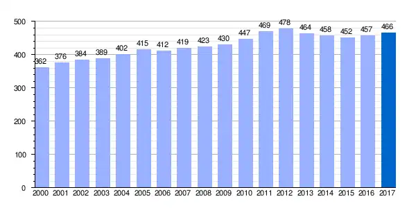 Gráfica de evolución demográfica de Iruraiz[1] entre 2000 y 2017 |