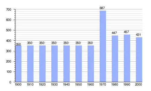 Gráfica de evolución demográfica de Iruraiz-Gauna entre 1900 y 2000 |