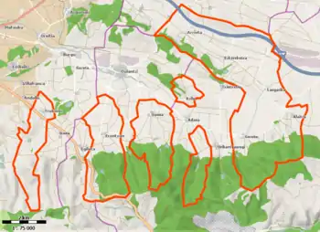 El enclave más grande y más oriental comprende los pueblos de Alaiza, Guereñu, Ezquerecocha, Gaceo, Langarica y Arrieta. Los límites de este enclave son al norte y noroeste con el municipio de Barrundia, al este con Salvatierra, al sur con Arraya-Maestu y al oeste con Alegría de Álava y una parte del municipio de San Millán. El concejo de Jáuregui está rodeado por este, oeste y norte por territorio de San Millán, mientras que por el sur limita con Arraya-Maestu. La capital del municipio, Acilu, forma un pequeño enclave entre San Millán y Alegría de Álava. Gauna forma también otro enclave que limita al este con San Millán y al norte y oeste con Alegría de Álava. Erenchun limita al este y oeste con Alegría de Álava y por el noroeste con Elburgo. Finalmente, Trocóniz es el más occidental de los enclaves y está situado entre Elburgo y Vitoria.
