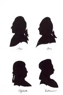 ![]() Siluetas de Isabel y sus hermanos en Horsens. | ||