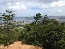 Una vista de la ciudad de Ishikawa desde la parte inferior del castillo de Iha.