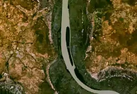 Tiene cerca de 5 kilómetros de largo, pero un de ancho de solo 490 metros, se trata de una isla deshabitada ubicada aproximadamente a 178 kilómetros de distancia aguas arriba de la localidad de Banjul. Detrás de la isla existe un estrecho canal de unos 80 metros.