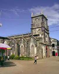 De 1869 a 1879, los franceses construyeron una iglesia católica de estilo gótico, la iglesia tiene 15 metros de alto y esta en el pueblo de Shengtang (盛 塘村, pinyin: cun Shengtang), Weizhou. La Iglesia Chengzai Weizhou(城 仔 教堂) fue construida en 1880, también por los católicos franceses. El gobierno de Vietnam había controlado durante mucho tiempo la isla, construyeron una gran cantidad templos y pagodas, antes de regresar Weizhou y la isla de Xieyang al gobierno chino.