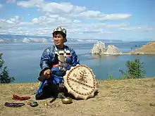 Los indígenas buriatos creen que la isla es un lugar espiritual, y en su costa oeste, cerca de Juzhir, se encuentra el paraje más famoso del Baikal, la Shamanka o Roca del chamán. Los nativos creen que el Burján, una figura de un culto religioso moderno de los pueblos altaicos, vive en una gruta de esta roca. La roca es uno de los nueve lugares más sagrados de Asia. Este lugar, junto con los pilares de oración "Sergee" se muestran en las fotografías de la isla con mayor frecuencia. Incluso hoy en día una parte de la población adora los espíritus y la naturaleza. Para ellos, este es un lugar sagrado, incluso hay una regla que prohíbe a las mujeres pisar las rocas.[4]