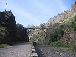 - La carretera entre Porto Novo y Ribeira da Cruz, en la costa norte de la isla, atraviesa igualmente el macizo central, y es aún hoy el único acceso a esta zona de la isla. De esta carretera, sale la carretera de Tarrafal, que bordea al pico de Tope de Coroa, el más alto de la isla, alargándose hasta Monte Trigo, en el extremo occidental.