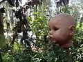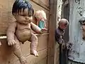 Algunos de los visitantes colocan ofrendas alrededor de esta muñeca a cambio de milagros y bendiciones, algunos otros cambian su ropa y le dan mantenimiento como forma de adoración.