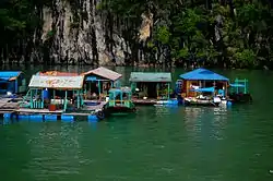 Este uso ocurre en las islas flotantes artificiales de los urus del lago Titicaca,[12] en los pueblos de pescadores de la bahía de Ha-Long (Vietnam), en varios lagos de China, en Uganda (en el lago Kyoga), en Zaire (en el lago Kisale), en Irak (en los pantanos del río Éufrates), etc.[1] Un zona donde son habituales las islas flotantes es la Amazonia, por ejemplo en los pueblos de caboclos pescadores brasileños o en algunos barrios de Iquitos], Perú.[13]