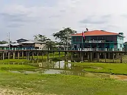 ![]() Sede de la alcaldía distrital del Yavarí y las tradicionales casas y veredas sobre pilotes.