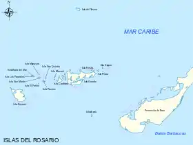 Las islas del Rosario (o Corales del Rosario) es un pequeño archipiélago formado por unas 28 islas,[1] que es parte de la zona insular de Cartagena de indias,[2][3][4] con una superficie terrestre de 20 hectáreas (0,20 km²) ubicado frente a las costas del Departamento de Bolívar, a la misma latitud que la península de Barú. En ellas se ubica uno de los parques nacionales naturales de Colombia, creado para proteger uno de los arrecifes coralinos más importantes de la costa Caribe colombiana.