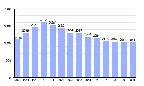 Gráfica de evolución demográfica de Isola d'Asti entre 1861 y 2001 |
