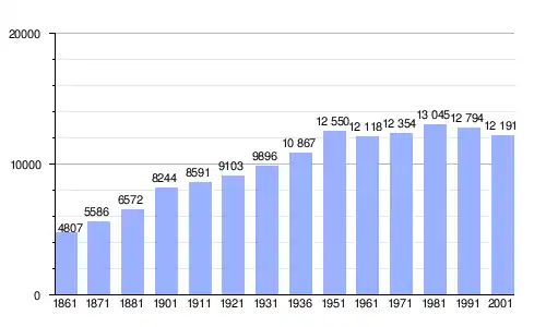 Gráfica de evolución demográfica de Isola del Liri entre 1861 y 2001 |