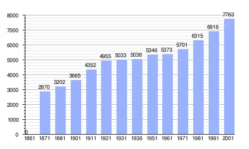Gráfica de evolución demográfica de Istrana entre 1861 y 2001 |