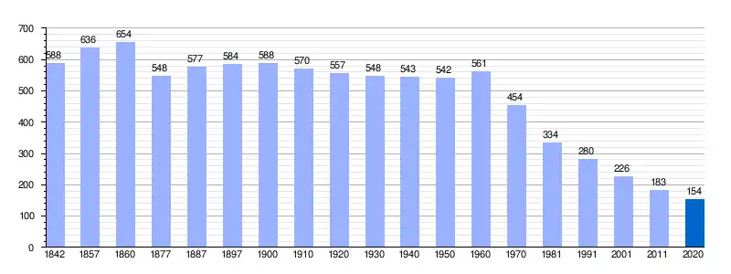 Población de derecho (1842-1991, excepto 1857 y 1860 que es población de hecho) o población residente (2001-2011) según los Censos de Población desde 1842. Población según el padrón municipal de 2020 del INE. |