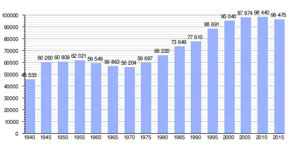 Gráfica de evolución demográfica de Itoshima entre 1940 y 2015 |