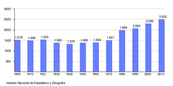 Según el último conteo del INEGI la localidad contaba hasta el 2010 con 2,502 habitantes, de los cuales 1,274 son hombres y 1,228 son mujeres, que representan el 37.89% del total municipal, conforme al Censo de Población y Vivienda 2010con fecha censal del 12 de junio de 2010, de acuerdo con el último conteo y delimitación oficial realizada en conjunto por el Instituto Nacional de Estadística y Geografía, el Consejo Nacional de Población y la Secretaría de Desarrollo Social.[11][12][13][14]