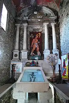 - Antiguo Templo de Santa María de la Asunción, se encuentra al sur de la plaza principal en el centro de la ciudad, fue la iglesia parroquial de la comunidad desde el siglo XVI hasta mediados de los 20, cuando fue declarado monumento nacional. Desde el "descubrimiento" de la presunta tumba de Cuauhtémoc, bajo el altar principal, a cargo de la arqueóloga mexicana Eulalia Guzmán Barrón –quien lo declaró presionada por el gobierno federal, presidido por Miguel Alemán Valdés–,[17][18] este edificio y sus jardines se han convertido de un santuario religioso a uno civil. El ex altar principal es ahora un santuario para el último emperador azteca, con unos restos que no son de él, en exhibición pública. Un pequeño museo ocupa el anexo de la iglesia antigua.[19]