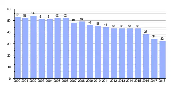 Gráfica de evolución demográfica de Ixobre entre 2000 y 2018 |