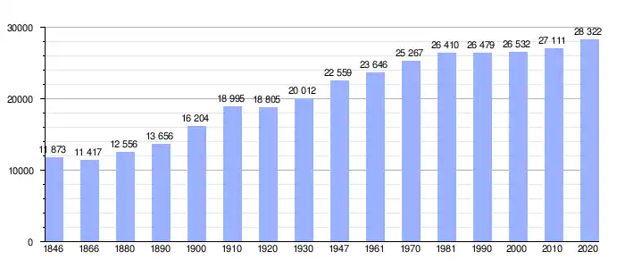 Todos los datos históricos relativos al actual municipio, el siguiente gráfico refleja su evolución demográfica, incluyendo municipios después de efectuada la fusión el 1 de enero de 1977.