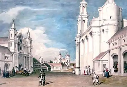 Hasta 1812, realizó numerosos viajes por países como Lituania y Rusia, donde pintó a la acuarela y en sepia paisajes con staffage, así como algunos vedute. Pasó algún tiempo con su antiguo mentor, Smuglewicz, en la Universidad de Vilna.[1] De 1807 a 1810, permaneció en Nesvizh, donde trabajó como pintor de la corte del príncipe Michał Hieronim Radziwiłł.[2]