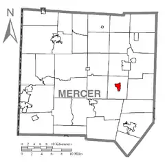 ![]() Ubicación en el condado de Mercer ![]() Ubicación del condado en Pensilvania ![]() Ubicación de Pensilvania en EE. UU. | ||