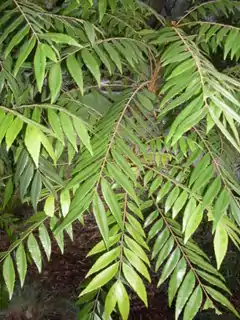 Las hojas son alternadas y pinadas, con ocho a veintiséis foliolos. Los foliolos miden de 4 a 6 cm de largo. Dentados, desiguales, con un extremo puntiagudo. Las ramillas y el envés de las hojas son vellosos.