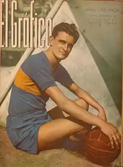 ![]() Portada de El Gráfico vistiendo los colores de Boca Juniors. | ||