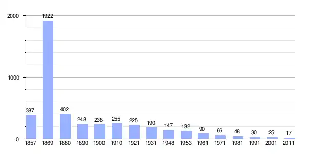 Gráfica de población de Jakov Polje 1857-2011 |