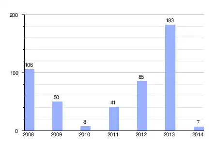 Gráfica de evolución de la deuda viva del ayuntamiento entre 2008 y 2014 |