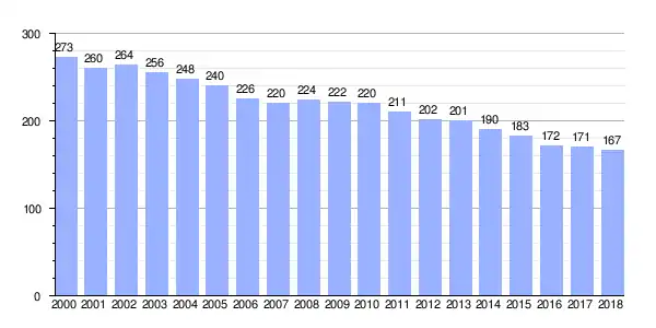 Gráfica de evolución demográfica de Jallas entre 2000 y 2018 |