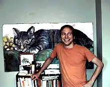 ![]() James Kochalka en su casa en agosto del año 2000 en Burlington, Vermont | ||