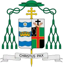 El Lema episcopal: CHRISTUS PAX (traducción:Cristo, nuestra paz), tomado de Efesios 2: 13-14