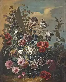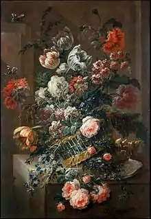 Sus "cuadros de guirnaldas" se remontan a un género de representación de flores inventado a principios del siglo XVII en Amberes por Jan Brueghel el Viejo. El género fue practicado posteriormente por los principales pintores flamencos de bodegones, como Daniel Seghers. Los cuadros de este género suelen mostrar una guirnalda de flores o, con menos frecuencia, de frutas alrededor de una imagen devocional o un retrato. En el desarrollo posterior del género, la imagen devocional fue sustituida por otros temas, como retratos, temas mitológicos y escenas alegóricas [1] [2]