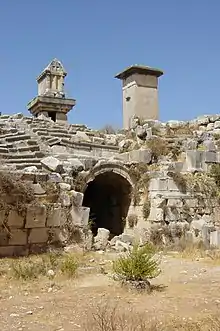 Las excavaciones y los estudios de la misión arqueológica francesa han permitido reconstruir perfectamente la arquitectura de este sepulcro, que perteneció a un príncipe licio desconocido y que fue edificado por artistas desconocidos de la Jonia griega.