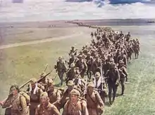 La invasión alemana de la Unión Soviética en junio de 1941 hizo que esta enviase parte de sus unidades desplegadas en Asia oriental a Europa.[135] Pese a ello, Japón decidió no aprovechar el momento para atacar a la URSS, preocupada por la situación en el sureste asiático y la reacción hostil de los Estados Unidos.[135]