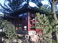 Un pabellón cuadrado con porche anexo, construido como parte del jardín original. |