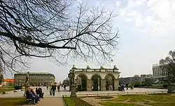 - El Teatro de Verano, un popular teatro de variedades de verano, existió entre 1870 y 1939. Fue construido por Aleksander Zabierzowski durante el mandato de Stanisław Moniuszko en el Gran Teatro, entre la torre de agua y el Palacio Azul. A partir de entonces, cada año se representaban allí las actuaciones de verano de los teatros de Varsovia. En esta época, el Teatro de Verano tenía una capacidad para 1065 espectadores sentados.[17] Helena Modjeska[18] y Pola Negri[19] hicieron varias apariciones allí. El teatro se quemó en septiembre de 1939 tras el impacto directo de una bomba incendiaria[18] y nunca fue restaurado.