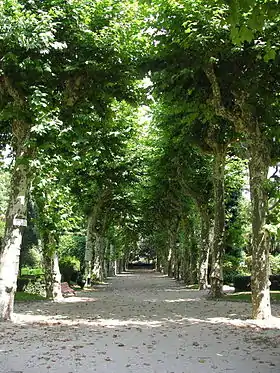 ![]() Paseo central de Acer pseudoplatanus en el jardín botánico de Padrón. | ||